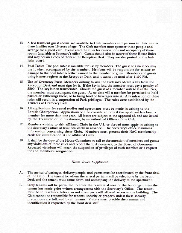 The NAC is now in the position where it must prove in Federal District Court that Aldon James' inviting large groups of schoolchildren into Gramercy Park unannounced and without clearance from the Gramercy Park Trust was neither a gathering prohibited by The NAC's own house rules, nor by the rules long established and well-known to Aldon by the Gramercy Park Trust.