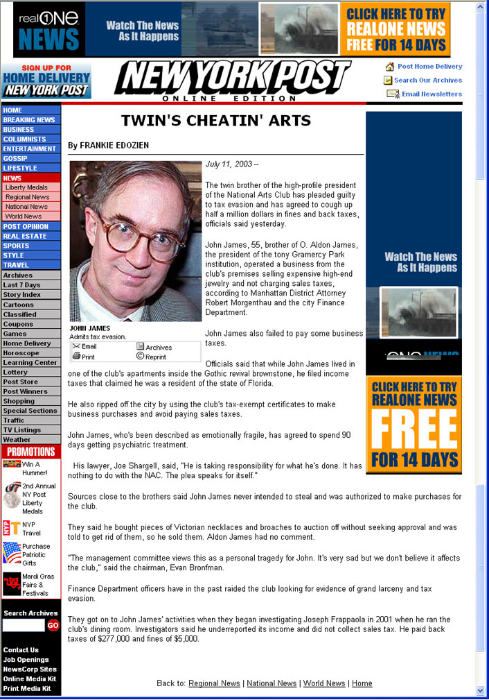 New York Post Covers Raid on NAC January 5, 2002