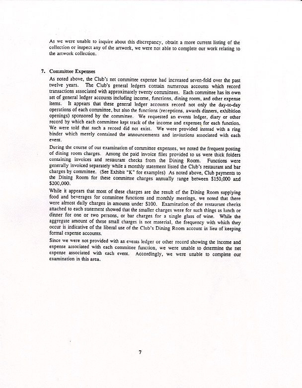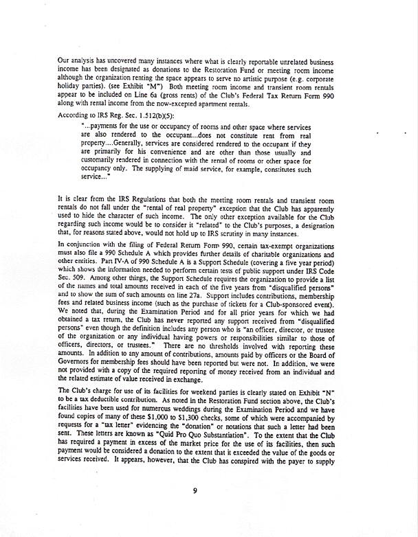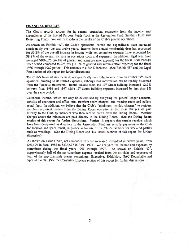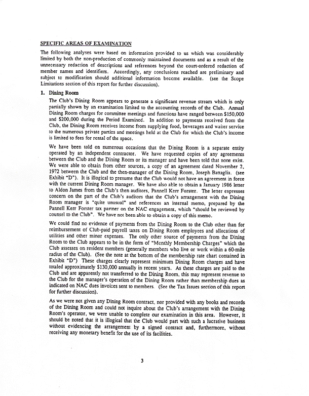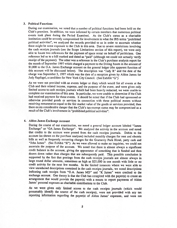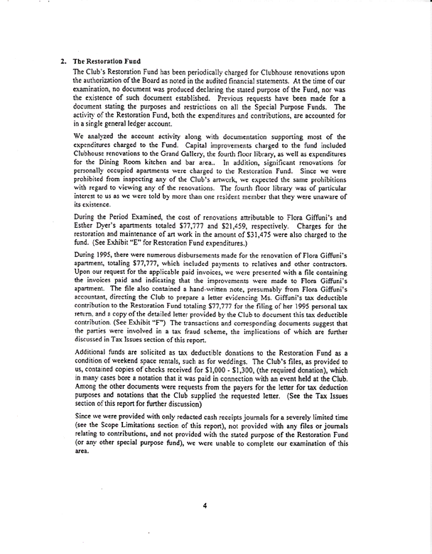 Below is a copy of the Weiser Audit's summary of findings. Of particular interest are the sections pertaining to the Dining Room, Restoration Fund, legal expenses and an exchange account for Aldon James and John James.